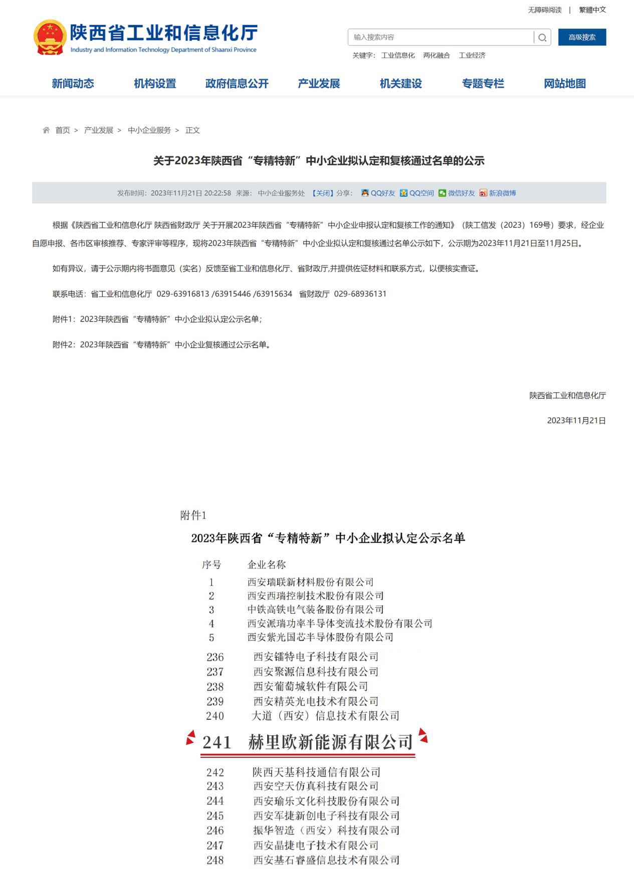 入选2023年陕西省“专精特新”企业名单