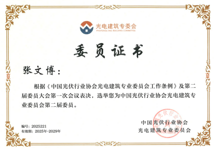 金数据新能源获选中国光伏行业协会光电建筑专业委员会第二届委员单位 发布日期:2025-03-24