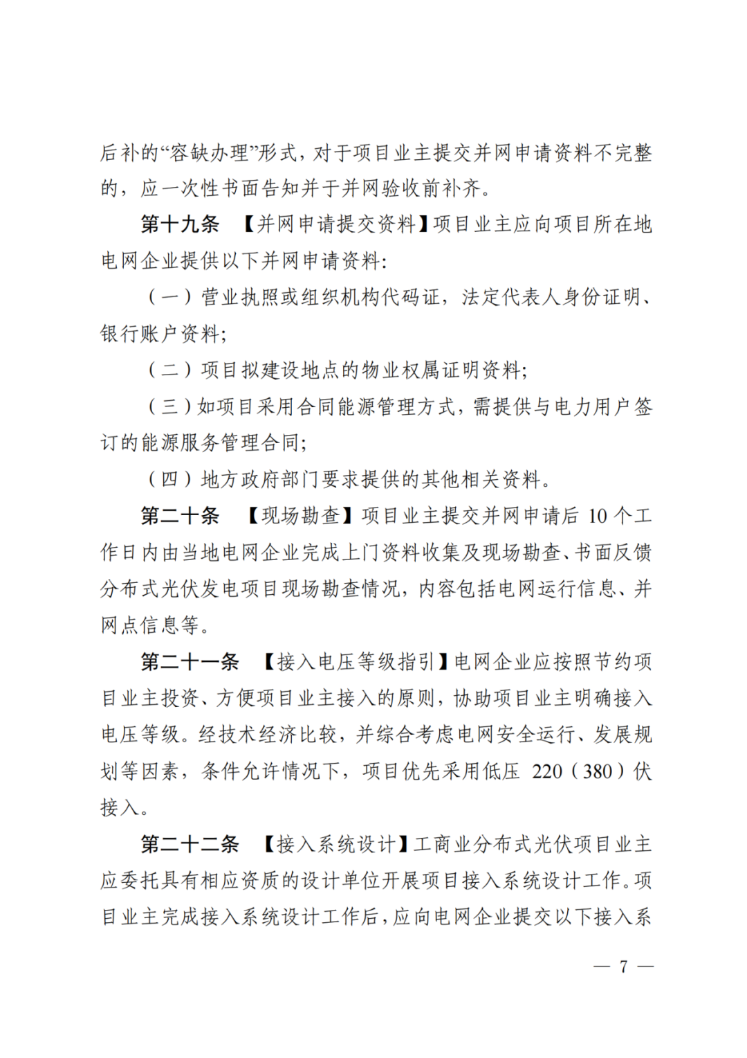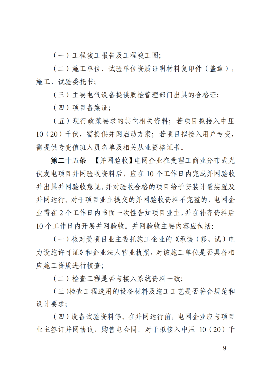 工商业项目工程建设完成后,提交以下并网验收资料:
